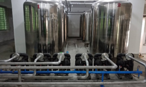 Pneumatic actuated diaphragm pumps for dispensing the gum/thickener paste from the storage tanks to the dispensing station stands.